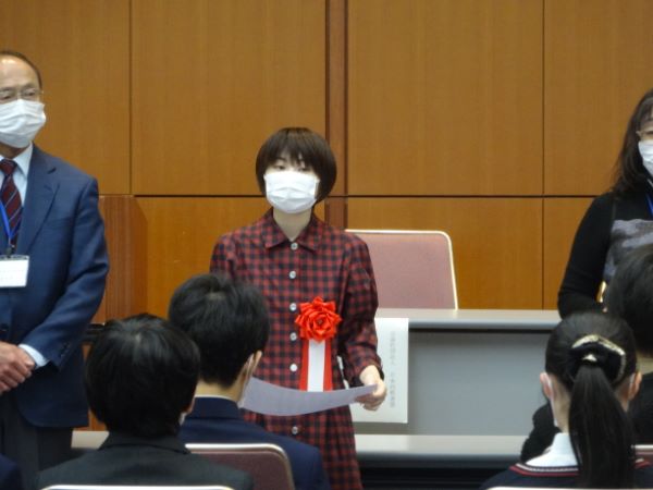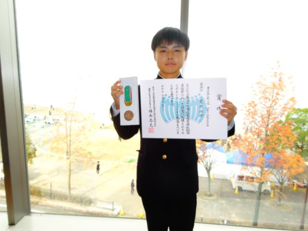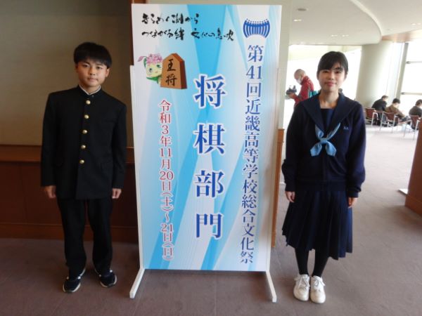 2年次の中谷さんが女子個人戦A級に、1年次の芝原君が男子個人戦A級に参加しました。中谷さんは女子個人戦A級で初戦勝利を収めたもの、その後は近畿の強豪選手と当たり、善戦したものの、2敗で予選敗退となりました。芝原君は予選を突破し、決勝トーナメントに勝ち進みました。21日の決勝トーナメントも順調に勝ち上がり、近畿3位という好成績を収めました。表彰式では、日本将棋連盟の石本さくら女流二段より表彰状とメダルをいただきました。
