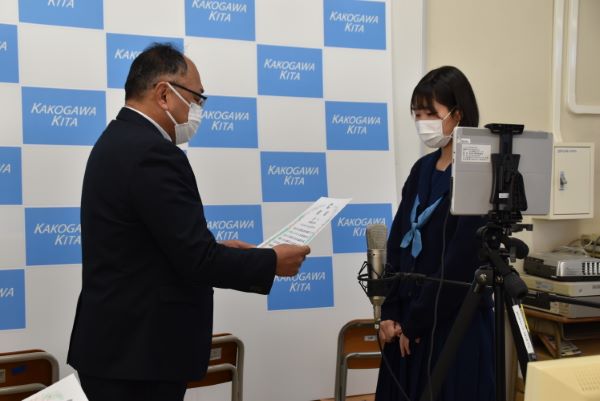 2023年1月10日(火)3学期始業式をリモートで行いました。 校長先生の式辞の後、表彰伝達が行われ女子テニス部、吹奏楽部、美術部、そして読書感想文コンクールで播磨東地区の代表に選出された生徒が表彰されました。 「2023/01/10up]