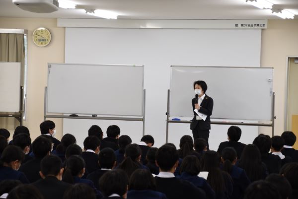 2022年9月21日(水)6限、1年次を対象に進路講演会を行いました。ベネッセコーポレーションより講師をお迎えし、一年次から受験勉強を始めることの重要性と、模試の取り組み方について学びました。