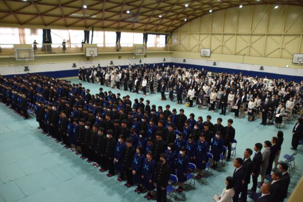 2024年4月8日(月)令和6年度入学式を挙行しました。 式次第 1 開式のことば 2 国歌斉唱 3 入学許可 4 校長式辞 5 新入生代表宣誓 6 PTA会長祝辞 7 来賓紹介ならびに祝電・祝辞披露 8 校歌披露 9 閉式のことば 入学式終了後に1年次担任団の紹介と年次主任の挨拶がありました。 「2024/04/08up]