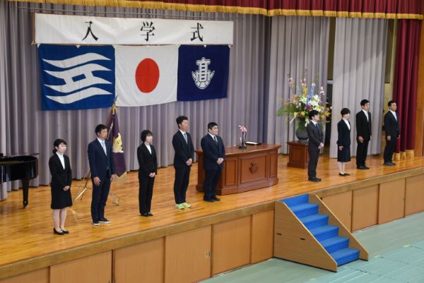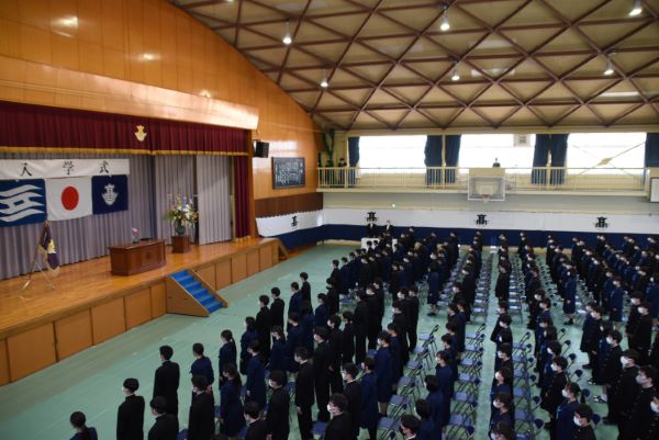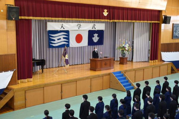 2023年4月10日(月)令和5年度入学式を挙行しました。 式次第 1 開式のことば 2 国歌斉唱 3 入学許可 4 校長式辞 5 新入生代表宣誓 6 PTA会長祝辞 7 来賓紹介ならびに祝電・祝辞披露 8 校歌披露 9 閉式のことば 入学式終了後に1年次担任団の紹介と年次主任の挨拶がありました。 「2023/04/10up]