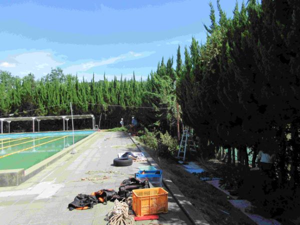 2025年9月24日(水)県立山の学校から、生徒と教職員の皆様が来校され、本校プール周辺の剪定作業をされました。 茂っていた木々が整えられ、周囲が明るくなりました。 「2025/10/01up]