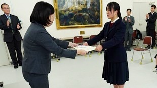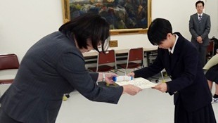 | 「税に関する高校生の作文」表彰式 1年次生4名が表彰されました |