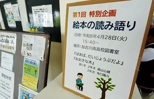 | 図書委員会 特別企画 絵本の読み語り 日時:4/28(火)15:40~ 場所:図書館 |