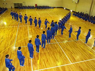 どのクラスも難しい隊形を次々に、こなします。これも、練習の成果です。