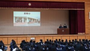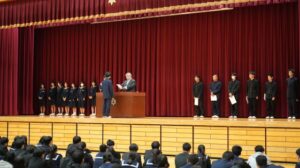 生徒会長よりマナーアップ宣言が行われ、地域に愛され、地域に貢献する学校を目指して、香住高校全体で取り組むべきことについて意識の共有を図り、閉会となりました。