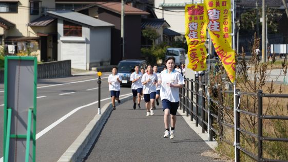 香住高校の周辺を回り三田浜海岸を臨む、男子は約8km、女子は約6kmのコースを走りました。