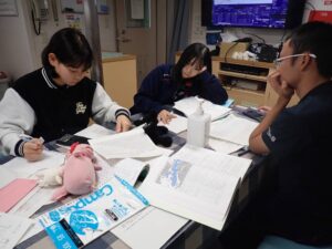 航路学習では、航程のナビゲーションスケジュールを作成したり、航路発表会に向けての原稿作成に取り組みました。