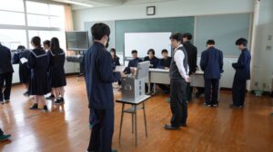 本当の選挙で実際に使用される記載台と投票箱を使用することで少しでも選挙のことを知れる機会になったと思います。