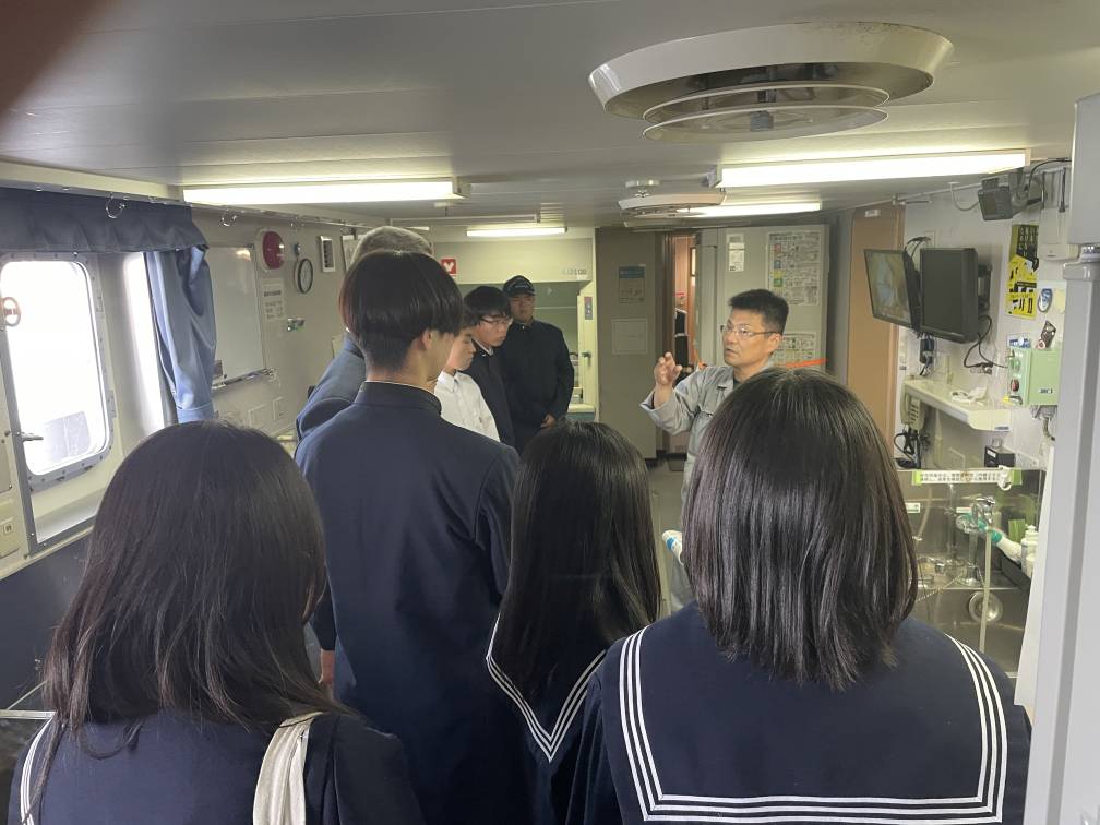 二等航海士の講義では船員の衛生管理について学びました。実際に船で衛生管理をしている人の映像を見してもらいそこで初めて船とある特定の病院が連携できることを知りました。