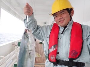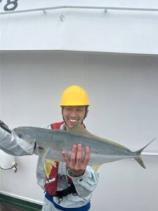水深は100mほどでメタルジグを使ったジギングでブリやヒラマサなどの青物を狙って釣りをしました。