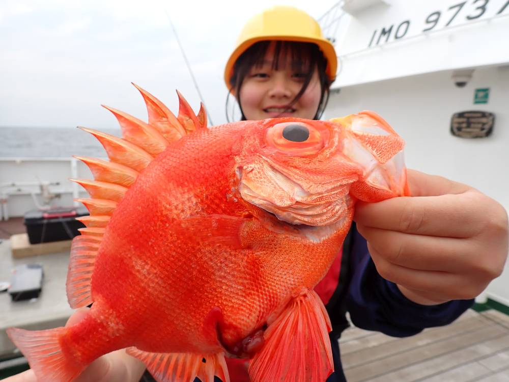 今日は午前中に2回午後に2回網を曳きました。2日前のトロールよりも全体的に多くの魚が入りました。ズワイガニやホッコクアカエビ、イバラモエビなどが入りました。普段食べているものがこれほど大変な作業で獲られていて私たちが食べられていると思うと感謝して食べないといけないと思いました。今までに見たことのない魚が獲れたり、同じように見える魚でもたくさんの種類に分かれていたり、新しいことを知ることが出来ました。食べたことのない魚も多く、味が気になるので、将来自分で獲って食べてみたいです。まだこんかいの実習は始まったばかりなのでこれからも実習を通して知識や経験を身につけたいです。