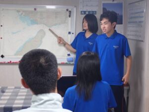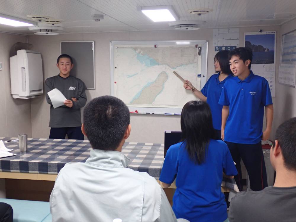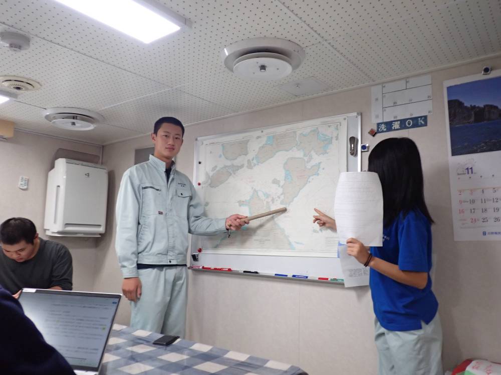 航路学習では、航程のナビゲーションスケジュールを作成したり、航路発表会に向けての原稿作成に取り組みました。