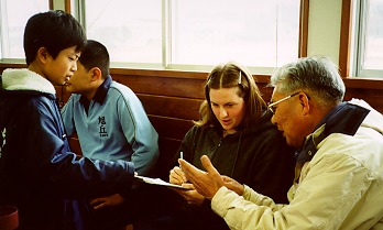 加小日本語教室は1999年6月に開かれました。社町の平池公園にある「こどものいえ」で毎週日曜日、午前10時から12時まで行われています。  私たち、社小学校の国際交流委員会は、その様子を見学に行きました。  現在、17名の在日外国人の方が勉強されています。国籍は、ベトナム、ペルー、韓国、デンマーク、カナダ、そして、結婚されて日本国籍になられた元中 国籍の方を含めると6ヵ国になります。  この教室は、加東郡と小野市に在住されている在日の人々の強い希望で開か れたそうです。日本語を教えているのは、地元の小・中学校の先生や一般のボランティ アの方です。教室に訪れたときは、アジア人が多くて、だれが先生でだれが生徒かよく分かりませんでした。 中学生の人もボランティアで来ていました。  まだ、半年しか日本語教室に来ておられないのに、日本語がとても上手でした。私たちの質問に日本語で答えてくださいま した。難しいことはなにかと聞くと、みなさん漢字が苦手だと答えられました。好きな日本語を質問用紙に書いていただきま した。「感謝」や「ありがとう」など漢字やひらがなでとてもじょうずに書かれました。  この教室には、いつも一生けんめい働きながら日本語を勉強されている人たちの熱気がありました。また行ってみたいです。
