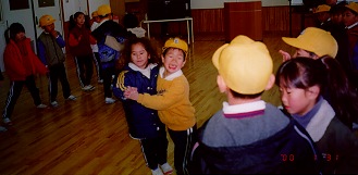 東条西小学校1年1組には、ブラジルから来ているお友達がいます。 そのお友達のお母さんにブラジルのダンスを教えてもらいました。  「ブラジルのダンスをしておもったことは、日本のおどりとちがってたくさんうごきまわったことです。 とてもおもしろくてたのしかったけれど、すこしつかれました。 男の子と女の子がペアになって、わになったりまわったりしました。 それでちょっとはずかしかったけれど、しているうちにたのしくなって、 そんなことわすれてたのしくおどってしまっていました。」(K・K)  これはみんなで踊ったときの、一人の男の子の感想です。 ブラジルの人は踊りが大好きで、音楽にのって本当に楽しく踊るそうです。 外国人児童指導補助員の先生やお母さんに、ブラジルの学校のことや遊びのこと、 勉強のことなどたくさん聞きました。ブラジルのことに興味を持ち始めている1年生のみんなです。 このダンスは、6年生を送る会でも踊るつもりです。