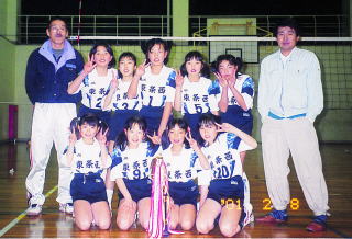 | 私たち東条西ジュニアバレーボールクラブは、6年生1名、5年生3名、4年生6名、3年生1名計11名です。 木曜日と土曜日の週2回練習をしています。学年に関係なく、みんな仲良しで、調子が悪い時はみんなでカバーし合っています。 これからも、みんなで助け合い、はげまし合っていきたいと思います。そして、このチームワークの良さを、後輩たちにも受けついでいってほしいと願っています。 キャプテン 久保 渚 |