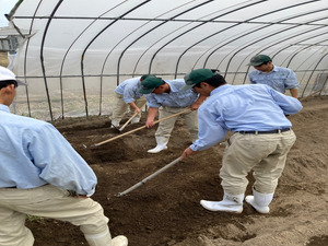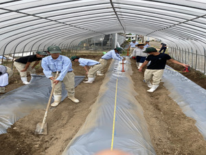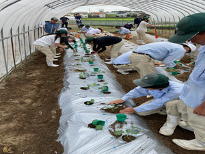 今年度より、農業科では加古川市の事業である、「自然にやさしい農業促進事業」を行っています。2学期ではブロッコリーの有機栽培に挑戦することにしました。夏休みの間にバーク堆肥や油かすなどを入れた圃場に畝を立てることからスタートし、マルチ張り、定植、トンネルの作成を行いました。これから班ごとに自分たちで管理を行っていきます。また、実習後には加古川市観光大使の上野樹里さんからいただいていた、ビデオメッセージを見ました。生徒たちは驚いたり、喜んだり色々な反応をしていました。モチベーションもとても上がっているように感じました。いろいろな方法を試しながら、栽培していき、生徒の学びにつながればと思います。