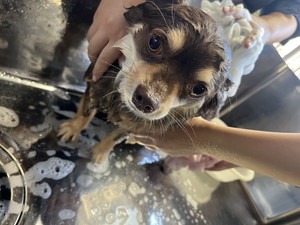 動物科学科職員のお家で飼っているワンちゃんを連れてきてもらいシャンプー・トリミングの練習をしました。普段、マックスやレオで練習していますが、違う犬種でトリミングを行うことができ良い経験になりました。県農職員の方でシャンプーの練習をさせてくださる先生方がいれば、ぜひ社会動物研究会にお任せください!色んな犬を見て、触れて、たくさん勉強していけたらと思っています。