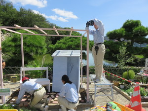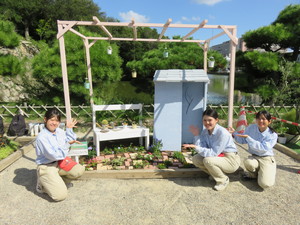 9月21日から県立明石公園で開催されている「ひょうごまちなみガーデンショーin明石」のアグリハイスクールガーデン部門に造園科3年生環境マネジメント類型ガーデニング班が出展しました。この部門は県下11校の農業高校の作品展示で、この日に向けて1学期から試行錯誤を繰り返しながら準備を進めてきました。作品のテーマは「Mirage garden(ミラージュガーデン)」。Mirageとはフランス語で幻想“や幻影“という意味があります。鮮やかな色の花やベンチ、小さくかわいい家などで、現実と幻想の狭間にあるような世界観を表現しました。 イベントは9月28日(日)まで開催されていますので、会場でご覧いただければ嬉しいです。