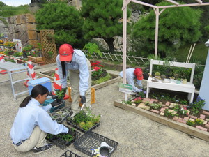 9月6日(土)に加古川市役所前広場で開催された第22回商工祭 加古川楽市に出展しました。今回は造園科の生徒が販売と多肉植物の寄せ植え体験教室を担当しました。販売では、観葉植物、多肉植物、ラン、ニンニク、カルピー、クッキーを販売しました。お客様とコミュニケーションをとりながら生徒も大忙し。寄せ植え体験も大人気でした。天候にも恵まれ、沢山のお客様に本校の活動を知っていただきました。