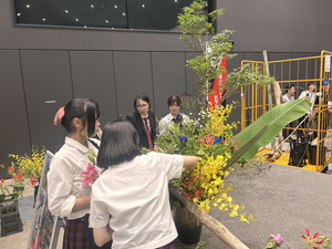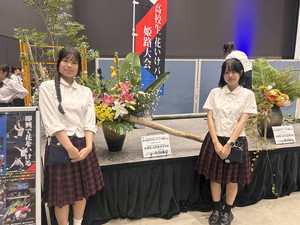 園芸科3年生の花いけバトルで準グランプリを獲得した生徒2名が、9月13日(土)に姫路市のアクリエ姫路で開催された姫路市の楽市楽座で花いけパフォーマンスを行わせていただきました。花いけパフォーマンスの後は作品展示用の花いけも行いました。10月5日(日)に行われる花いけバトル近畿大会の予行演習としても確認作業をしながら実践トレーニング を積むことができました。貴重な機会をいただくことができました。株式会社JFT姫路生花のみなさまに感謝申し上げます。