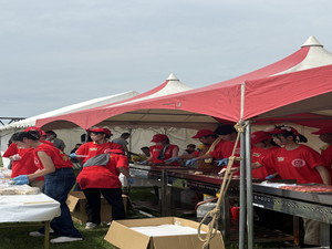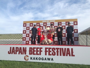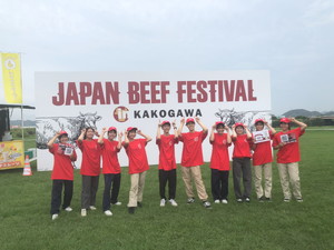 JAPAN BEEF FESTIVAL in KAKOGAWAに動物科学科3年生4名、2年生3名がボランティアスタッフとして参加しました。県農生の役割分担は、加古川和牛(神戸ビーフ)の試食担当で約2000食を焼く係りでした。鉄板で3時間かけて75sのお肉を焼きました。来場者の方から県農生「がんばれ」と励ましの応援をいただきましたがとても大変でした。主催者の平井雄一郎様から来年も手伝って欲しいと依頼されたので来年もぜひ参加したいと考えています。これからも地域の方々と協力して加古川和牛と神戸ビーフの生産や消費推進のPR活動を継続していきます。