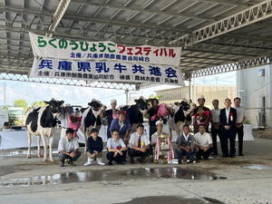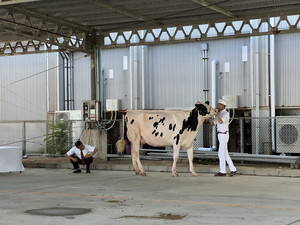 淡路家畜市場で行われた、第43回兵庫県乳牛共進会へ酪農研究会の生徒たちが参加しました。 今年は10月に全日本ホルスタイン共進会を控えているため、例年よりも早い9月開催となりました。厳しい気温の中で牛の管理や調整を行わなければならず、体調が心配でしたが、牛も生徒も大きな不調もなく無事に終えることができました。 今大会に本校からは計4頭の牛を出品しました。 気になる結果は・・・第6部に出場した「スウ」ちゃんが、見事優秀賞を勝ち取ることができました! 牛の毛刈りや調教でご協力くださった皆様、日々の生徒の活動を応援してくださっている保護者の皆様、本当にありがとうございました。 酪農研究会では、今後もより良い牛づくりのため、日々の管理や調教など頑張ってまいります。