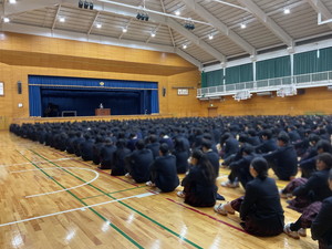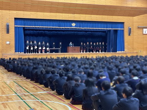 令和7年度第2学期の終業式を行いました。校長先生の式辞では、日本の農業人口の減少やコメ価格の高騰、世界人口の増加といった現状に触れながら、これからの社会における農業の重要性についてお話がありました。明日から冬休みが始まります。体調管理に十分留意し、3学期の始業式には生徒のみなさんの元気な姿が見られることを願っています。