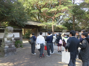 姫路の松原八幡神社で2年造園科生徒を対象にクロマツの剪定講習会が行われました。この取り組みは、姫路造園緑化組合にお世話になり平成26年から続いています。灘のけんか祭りで有名な松原八幡神社の入り口には立派なクロマツが並び、日々手入れされています。当日は、姫路で造園業を営まれている12名の親方からマンツーマンで剪定の技術を学びました。剪定は難しかったですが、マツと向き合う匠の技を直に感じることができました。親方の「伝統の技を伝えたい」という思いに感謝し、造園への興味がさらに強くなりました。姫路造園緑化組合の皆さんありがとうございました。