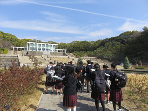 3月24日に造園科2年生が神戸市立須磨離宮公園の見学研修を行いました。須磨離宮公園は、昭和33年に上皇陛下(当時、皇太子殿下)ご成婚記念事業として整備が始まり、昭和42年自然と美しく調和した近代的な欧風庭園として開設されました。教科書で勉強したフランス平面幾何学式庭園やイタリア露壇式庭園といった諸外国の造園様式を実際に見ることができました。また植物園エリアでは、旧岡崎財閥邸宅や神戸の歴史も学ぶことができました。美しい植栽や温室で見たデザイン、技法をヒントに3年生から取り組む課題研究の活動に生かしたいと思います。