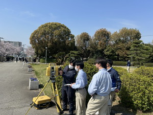 農業環境工学科では2年生の春季当番実習で播磨設計コンサルタント様による測量体験学習を実施しました。学校では扱うことのない機材に触れ、生徒たちは興味を持ちながら真剣に取り組んでいました。また、ご指導いただいた方々の中には本校の卒業生も多く、生徒たちにとって身近な先輩の姿に触れ、今後の進路を考える貴重な機会ともなりました。