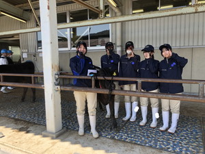 JA兵庫南を通じて但馬家畜市場4月市になごん号(雌)を出荷しました。 当日は、3年生2名と2年生3名で参加しました。なごん号はとても小さく産まれてきましたがすくすくと成長して無事に出荷できました。来月も出荷を予定しています。 肥育農家さんに褒めていただけるような子牛生産を目指します。