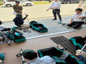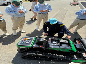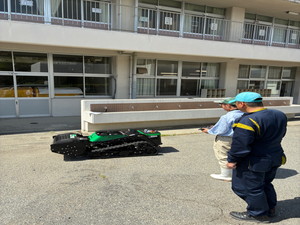 3年生の農業機械類型の生徒がJA共済連様から兵庫県11校の農業系の高等学校に寄贈してくださる高所作業機、電動刈払機、ラジコン草刈機の講習を受けました。JA兵庫南の佐藤様、株式会社マキタの井上様、中村様にお越しいただき、機械の使用方法について教えていただきました。生徒は今まで使用したことがない農業機械に触れることが出来、とても喜んでいました。来週の月曜日にはこれらの機会の贈呈式があり、簡単な実演も予定しています。今回学んだ内容を活かし、今後の学びにつなげてほしいです。