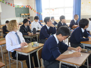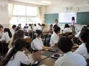 ウズベキスタンから神戸大学大学院農学部へ留学されているエルベック・ファルマノフさんにウズベキスタンの農業と文化について英語でお話していただきました。生徒たちもなかなか知る機会のないウズベキスタンの文化に驚き、日本と全く異なる農業生産の体制に真剣に聞き入っていました。一方で、ウズベキスタンでも若者の就農者の減少が問題になっていることに、文化は違っても同じ問題を抱えているという新たな発見をすることが出来ました。生徒たちからの質問にも丁寧に答えていただき、世界の農業を知る良い経験となりました。