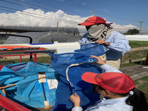 今年度より、農業科では加古川市の事業である、「自然にやさしい農業促進事業」を行っています。2学期ではブロッコリーの有機栽培に挑戦することにしました。夏休みの間にバーク堆肥や油かすなどを入れた圃場に畝を立てることからスタートし、マルチ張り、定植、トンネルの作成を行いました。これから班ごとに自分たちで管理を行っていきます。また、実習後には加古川市観光大使の上野樹里さんからいただいていた、ビデオメッセージを見ました。生徒たちは驚いたり、喜んだり色々な反応をしていました。モチベーションもとても上がっているように感じました。いろいろな方法を試しながら、栽培していき、生徒の学びにつながればと思います。
