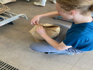 2年生の総合実習の時間に先日収穫し、乾燥した「きぬむすめ」の籾すりを行いました。今回の実習はフレーザー高校から短期留学で来ている生徒も参加しました。籾すりを終えた玄米を袋詰めしたところ、73袋出来ました。今年は猛暑が続き、「収量が減るのでは」と心配していましたが、昨年よりも収量がとれたかたちとなりました。今後は等級検査、精米を行います。