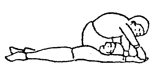 1,イメージトレーニングを行う。 ・ 床に仰向けに寝て、象に踏まれそうになる様子をイメージし、緊張とリラックス時の体の状態を体感する。 2,ペアトレーニングを行う。 ・導入として、風船を使い、できるだけやさしくやりとりを行う。 ・児童と保護者がペアを組み、肩の上げ下げを交互に行い、その時の感じを話し合う。 ・腕上げコントロールを交互に行う。 仰向けになって、脱力した相手に優しく声をかけ、ゆっくりと腕を上げてもらう。 ・おまかせ脱力を行う。相手に体をまかせ脱力することを体験する。 3,動作法の説明を聞く。 |