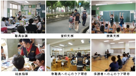 | 第1次 | 9/26〜28 | 6名 | 1名 | 7名 | ・児童生徒・教職員の心のケア ・登校指導、授業、部活動支援 ・養護教諭及びスクールカウンセラーとの連携 ・教職員心のケア研修 |