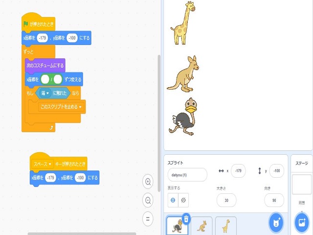 ・プログラミングを使って数字を入力し、自分で動物を動かして、どれが速いか、どう求めればいいかを楽しく学べました。