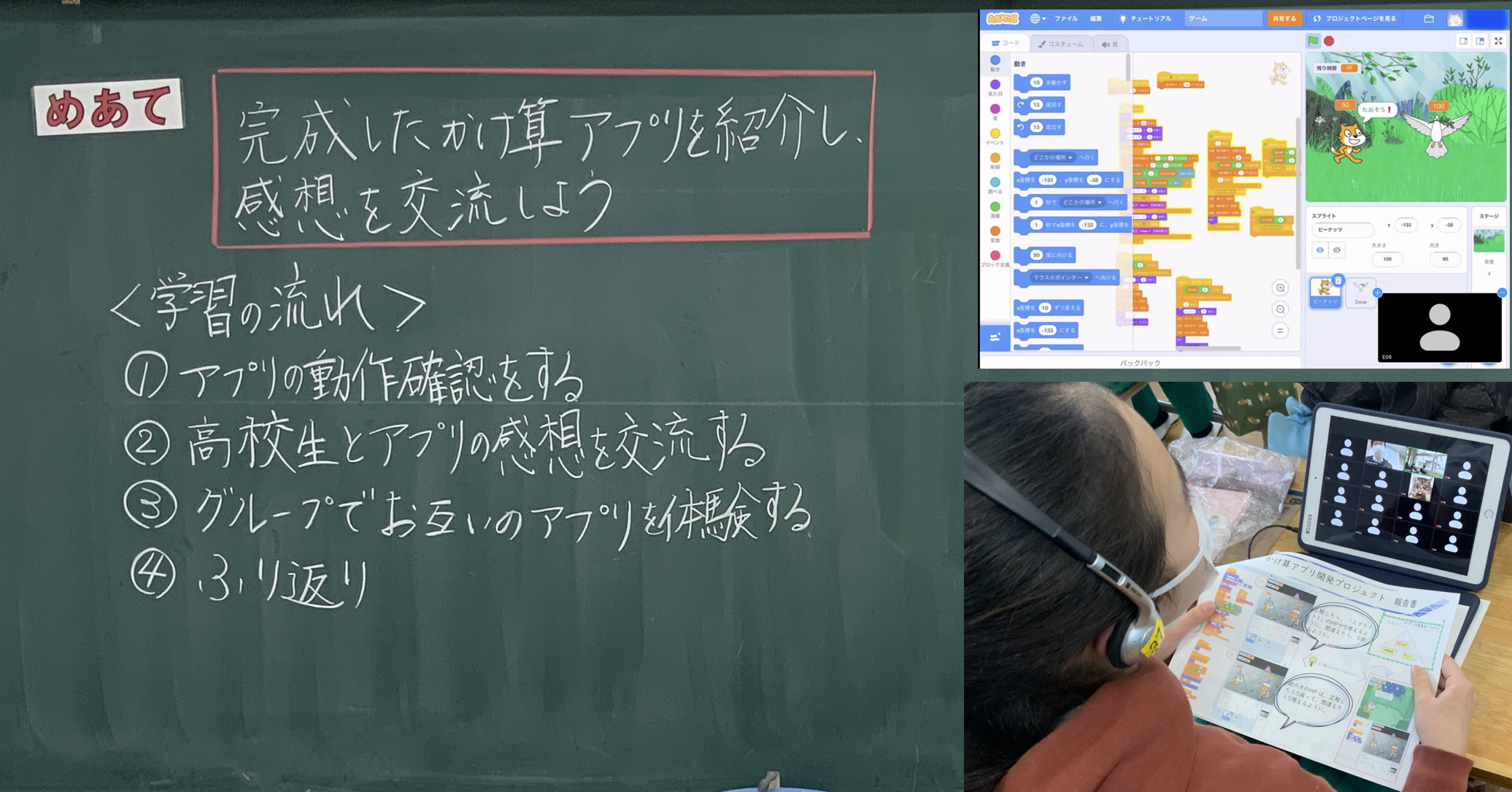 自分の考えをScratchで表現することは難しかったですが、子どもたちは創造を超えるようなプログラムを考え、作り手としての喜びも感じることができました。