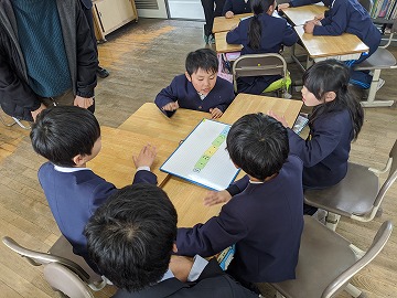 ・グループに分かれてリズムをリレーしたり,友達とリズムを重ねて演奏したりする。