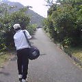 母と子の島到着。施設まで重いかばんをかついで歩きます。