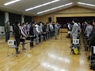 | 平成29年4月12日(水)18時から多目的ホールにおいて、 対面式・離任式が行われました。その後、引き続いて1年生オリエンテーションが行われました。 対面式では、在校生から新入生へ「歓迎のことば」があり、新入生から在校生へ「入学のあいさつ」がありました。その後、校長先生よりお言葉をいただきました。 離任式では、このたびの異動で転勤された先生方が出席され、お一人ずつお言葉をいただきました。 引き続き行われた、1年生オリエンテーションでは、在校生(部員)による部活動紹介があり、 「進路指導部」「教務部」「生徒指導部」の各部長の先生から話がありました。 |