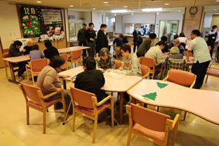 10名が特別養護老人ホーム「花みさき」を訪問しました。高齢者の方々とお話をしながらクリスマス壁飾りを一緒に製作しました。