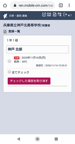 保護者用 生徒の欠席・遅刻連絡システムの使い方です。