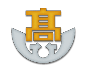 神戸の港に因んで、錨によって「北」を表現し、その上に金文字で「高」の文字を配したものです。