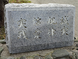 ■誠実: 他人を尊ぶとは、自己に誠実であることにより始まる。すべての人が誠実であるところに、人間関係が成り立たねばならない。本校は、まず誠実な人づくりに力を入れたい。