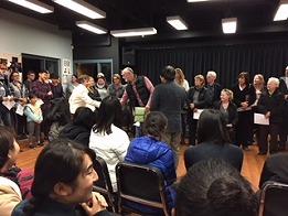 ![]() Report: 準備を重ねてきたプレゼンの発表をしました。100人近くのオーディエンスは大いに楽しんでくれました。 ![]() Report: 最後に全員で挨拶しました。 |