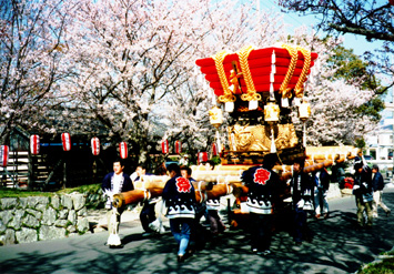 そして、このだんじり唄は各地域の春祭りで、町内から繰り出される豪華なふとんだんじりの前で唄われ、神社に奉納されるものです。