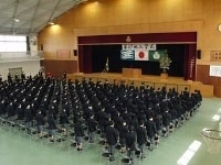 結びになりますが、新入生の皆さん。いよいよ高校生活がスタートします。まず自分の目標をしっかり掲げ、その目標に向けひたむきに歩んでいってください。皆さんにとって本校での三年間が素晴らしいものになりますことを心から願い、式辞といたします。